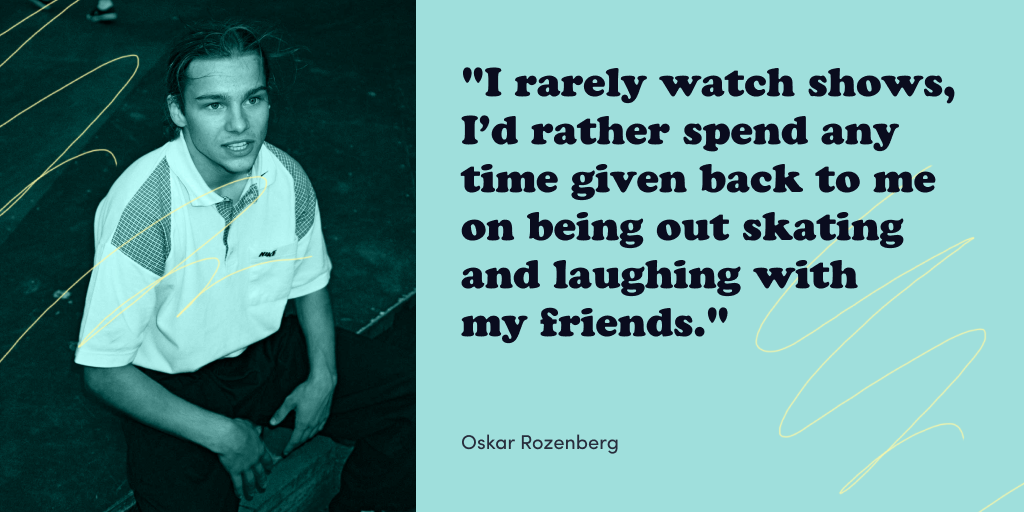 I rarely watch shows, I’d rather spend any time given back to me on being out skating and laughing with my friends. These days it seems like any day could be your last so I try to remind myself about that any time I’m noticing that I’m spending too much time in front of a screen. During the coronavirus pandemic, shows can be an important form of entertainment though, so if I did have time, I would rewatch Seinfeld.